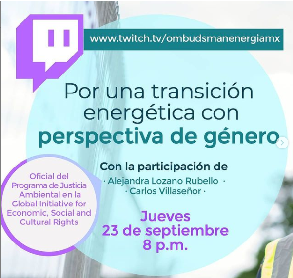 Last 23 September, the Global Initiative for Economic, Social and Cultural Rights (GI-ESCR) participated in a podcast organized by Ombusman Energía Mexico (OEM), a civil society organization of energy experts dedicated to empowering citizens and energy users in Mexico, to detonate the conversation with broader audiences on the implications of the energy transition for women’s rights and the advancement of gender equality.