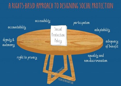 Human rights provide a framework for the design and implementation of social protection programmes, services and policies through human principles and standards. Some of the principles and standards that social protection policy-makers should bring to the table when designing, assessing and implementing programmes and policies are included in figure 1[4].