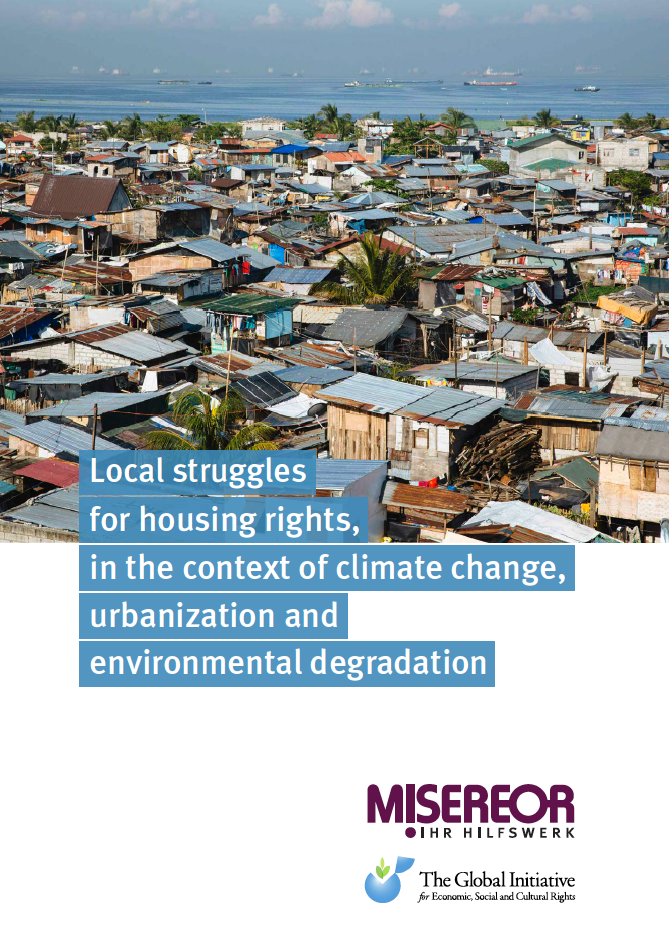 This report, published jointly by GI-ESCR and MISEREOR, tackles the growing impacts of climate change, urbanization and environmental degradation on the right to adequate housing and outlines how communities are finding solutions to address these challenges.