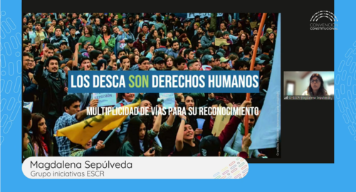 La directora ejecutiva de GI-ESCR, Magdalena Sepúlveda Carmona, expuso ante la comisión de derechos humanos de la Convención Constitucional de Chile sobre los derechos económicos, sociales, culturales y ambientales (DESCA). En la audiencia, explicó las distintas vías a través de las cuales las nueva Constitución podría consagrar y proteger estos derechos.