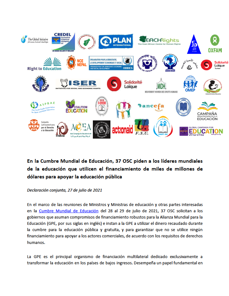 In a statement accompanying the brief, we call on the Global Partnership for Education to use the money raised during the Global Education Summit (28-29 July), to support free public education and ensure that no funding is used to support commercial actors, in accordance with human rights requirements.