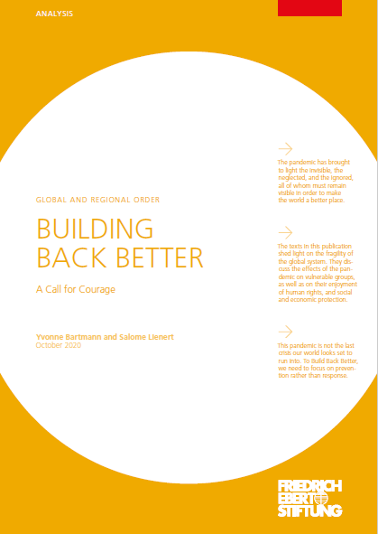 13 authors including Magdalena Sepúlveda, GI-ESCR’s Director, contributed to the publication and podcast series “Building Back Better: A Call for Courage”, published and released today by the Friedrich Ebert Stiftung (FES). They shed light on the fragility of the global system. They discuss the effects of the pandemic on vulnerable groups, as well as on their enjoyment of human rights, and social and economic protection and provide concrete and realistic policy recommendations.
